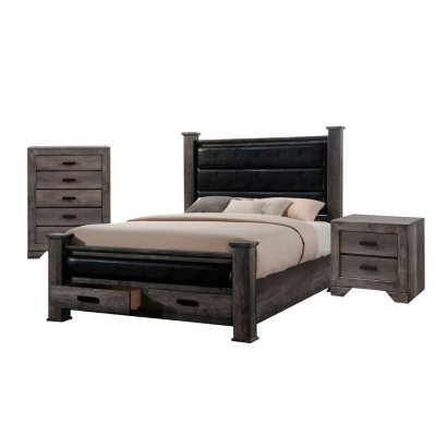 Cw 4pc full/queen headboard/ 3drawer chest / night stand / bedframe.